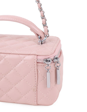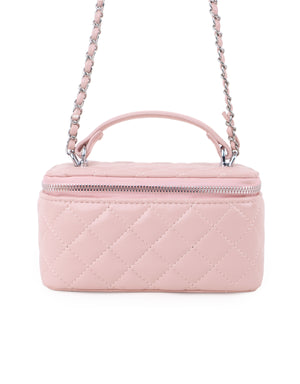 Cheerful and stylish, this quilted vanity shoulder bag in pink faux leather is made to be her new favorite accessory.